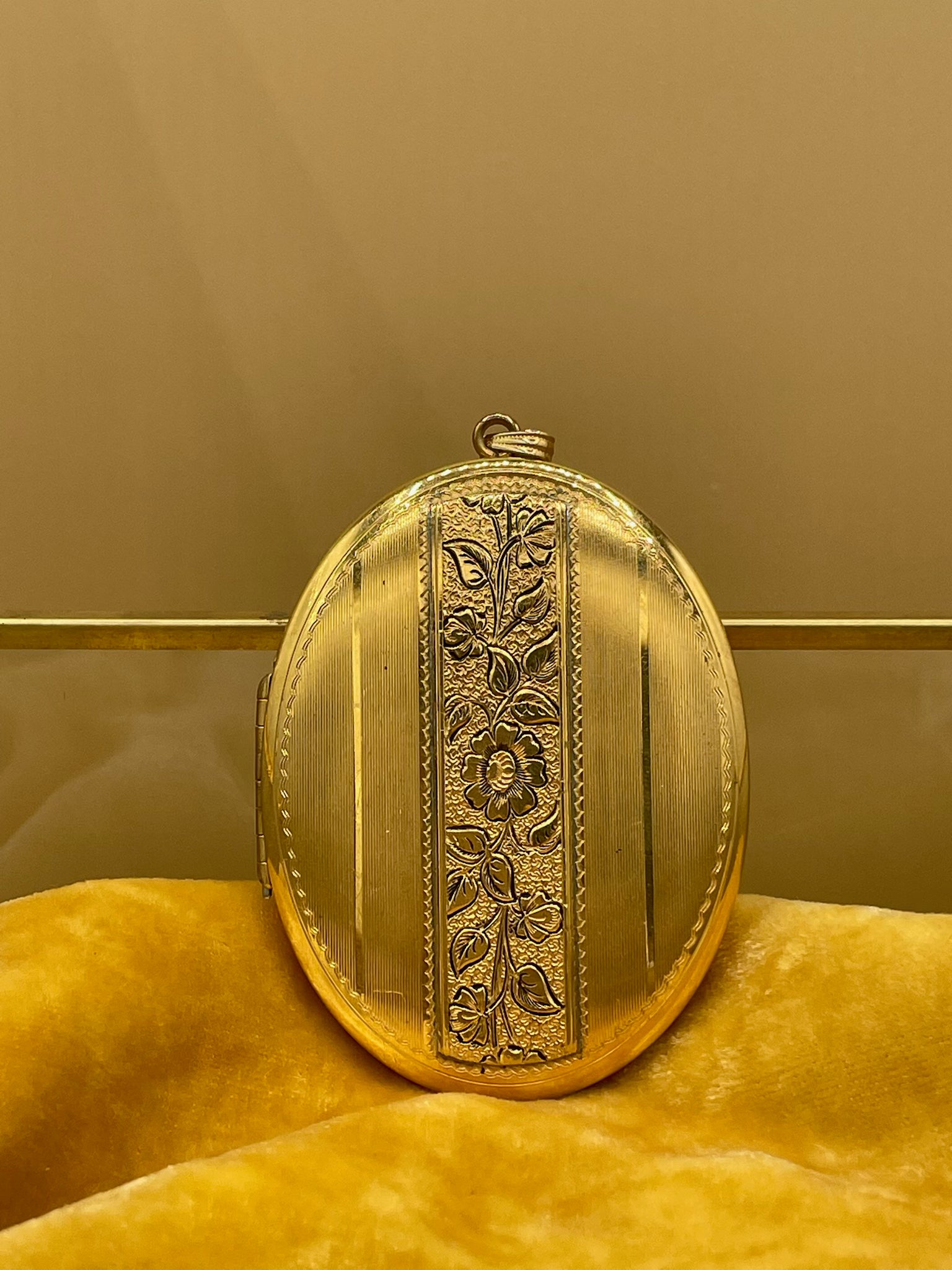 12K Gold Fill Vintage Etched Photo Locket Pendant
