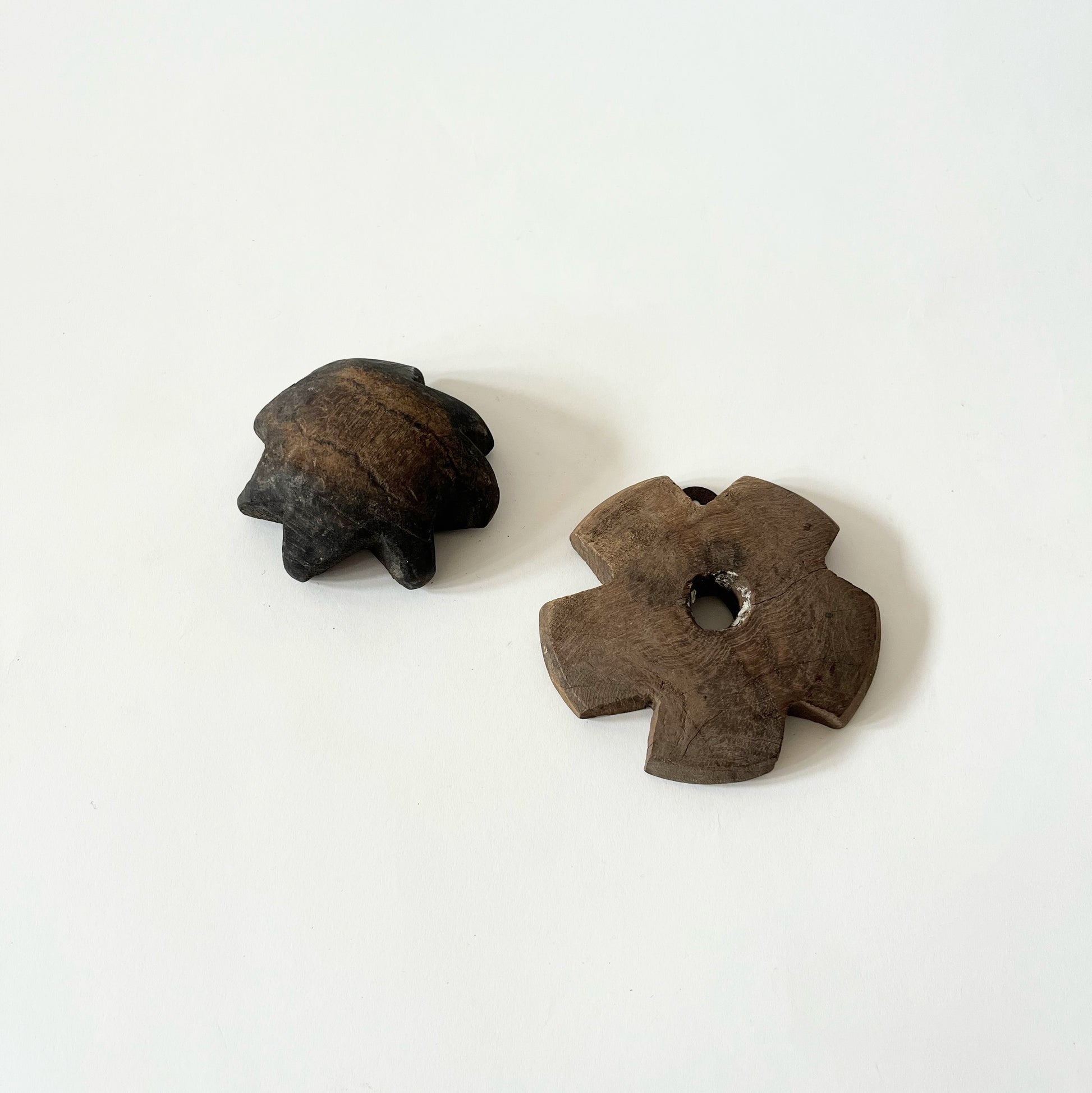 Once part of an old-world gear system, these antique wooden cogs have been reimagined as sculptural wall hooks. Each piece is rich with patina, wear, and hand-carved detail—no two are exactly alike. A small hook has been added to the back for easy hanging, whether styled solo or as part of a gallery wall. Rustic, graphic, and full of character.