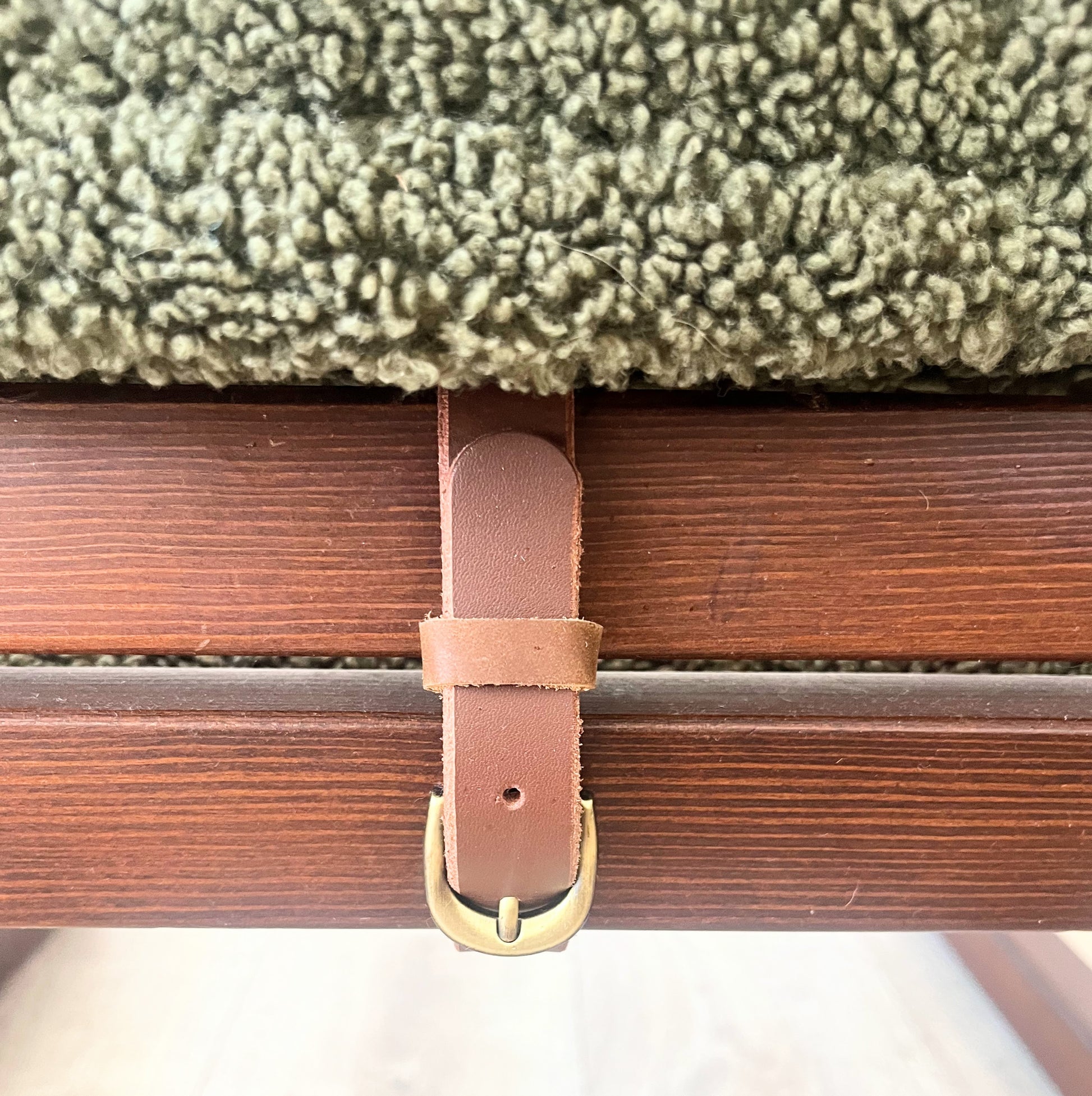 I’ve updated them with new upholstery in a beautiful olive green Knoll fabric, giving them a fresh, modern edge while staying true to their understated charm. The textured fabric brings a cozy, organic feel that pairs beautifully with the rustic character of the wood.