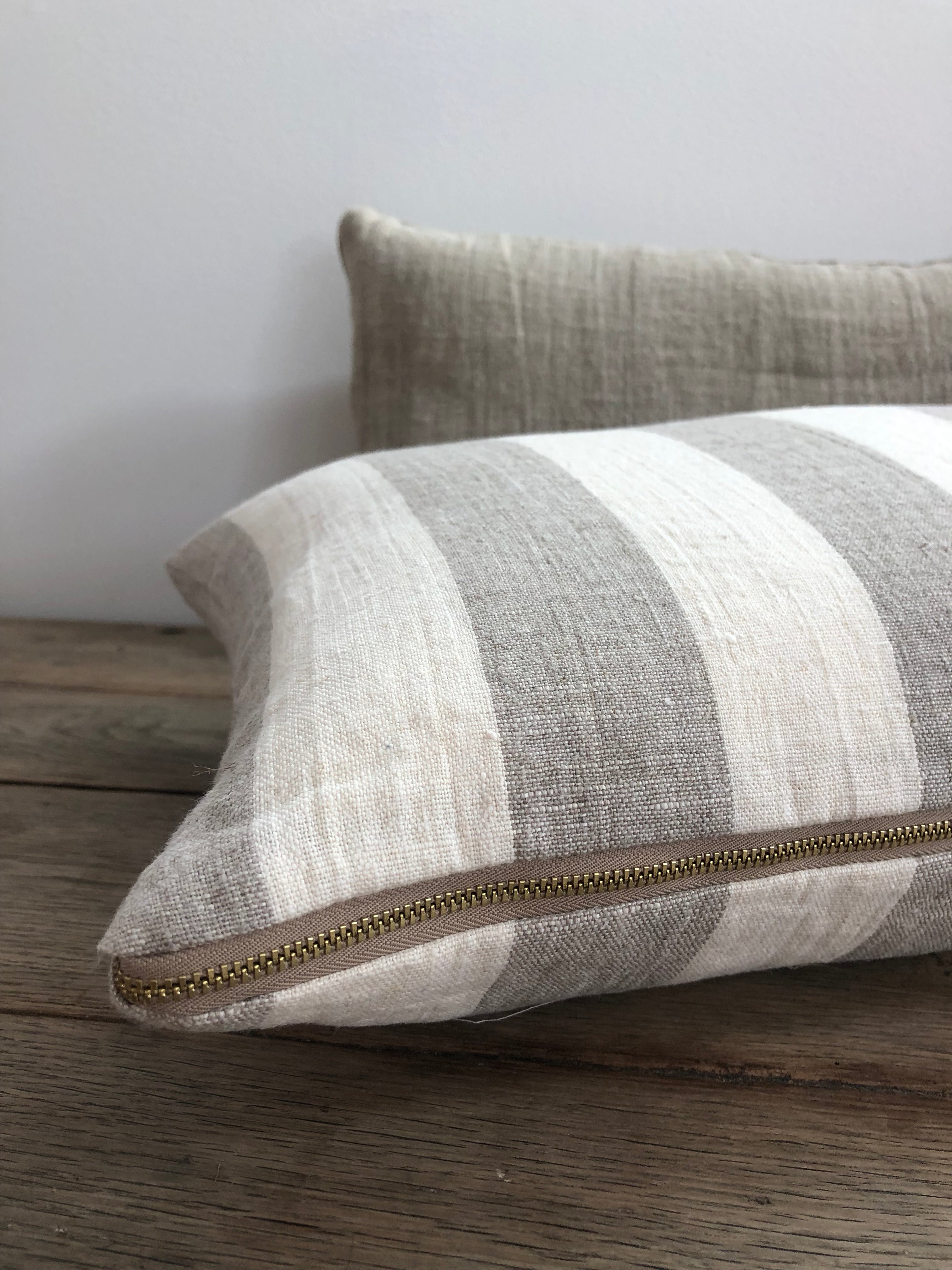 Cream and Taupe Big Stripe Linen Pillow