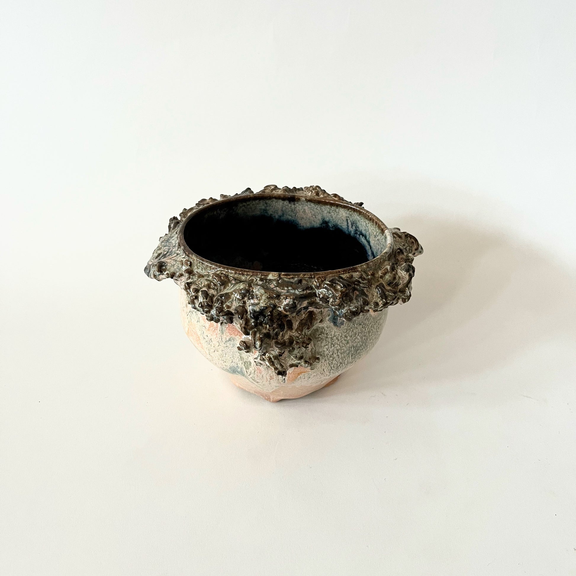 Found Pottery Wide Glazed Vase with Organic Details