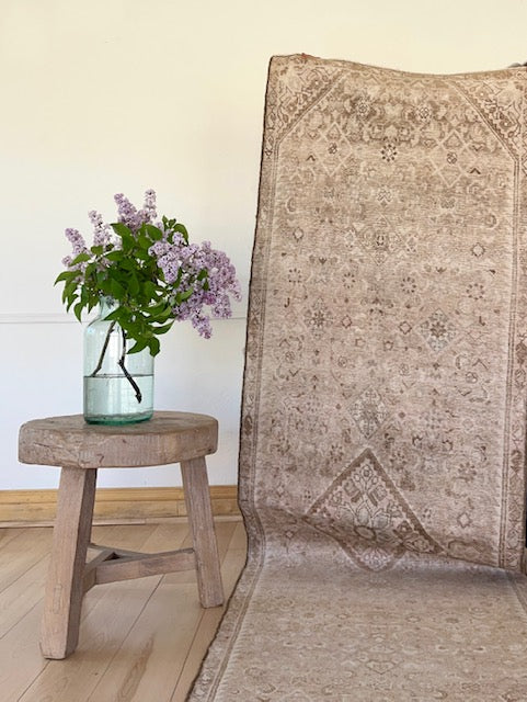These antique vintage rugs have areas of wear and repairs and I love the stories behind every imperfection. Many rugs do not have straight lines because they are all handmade and one of a kind.