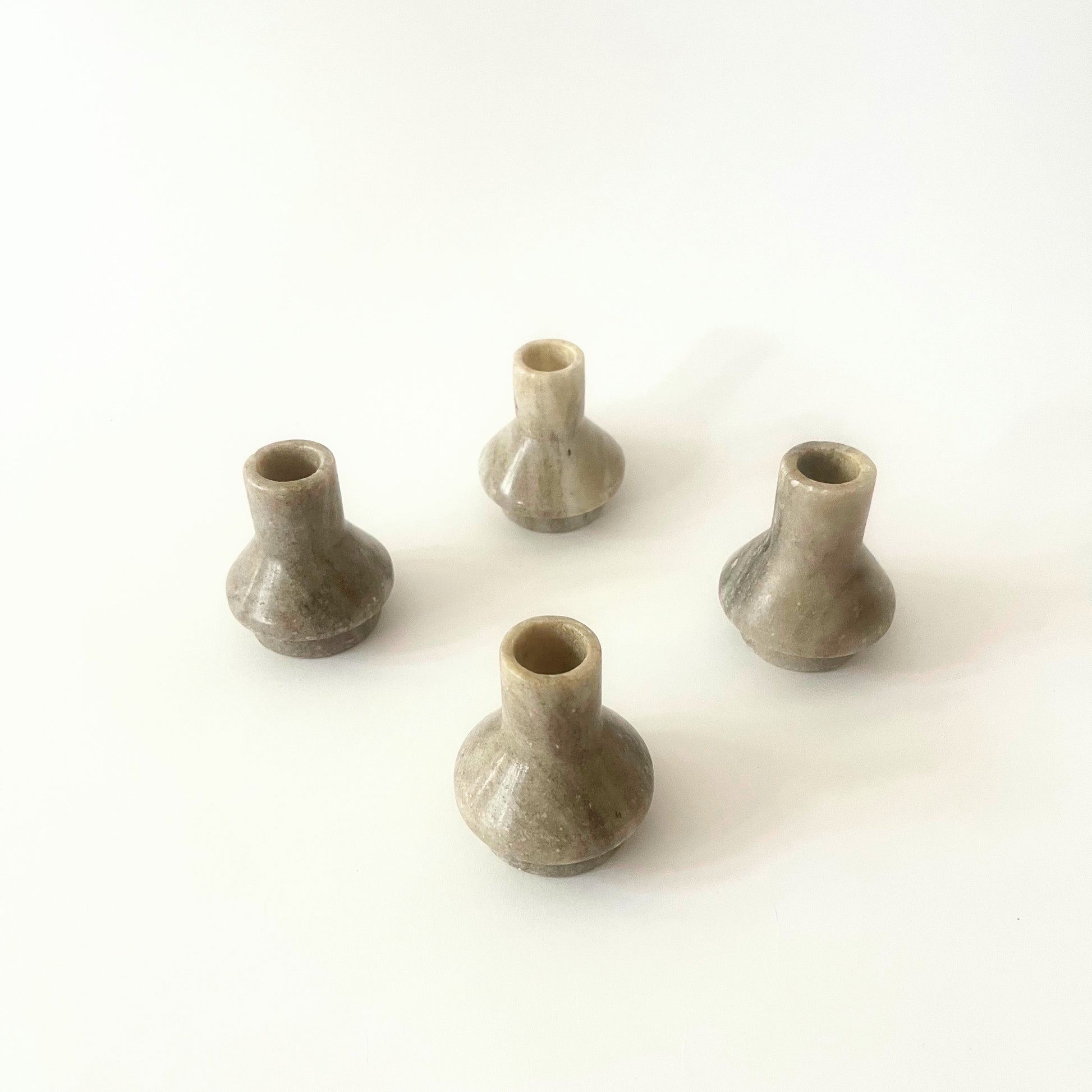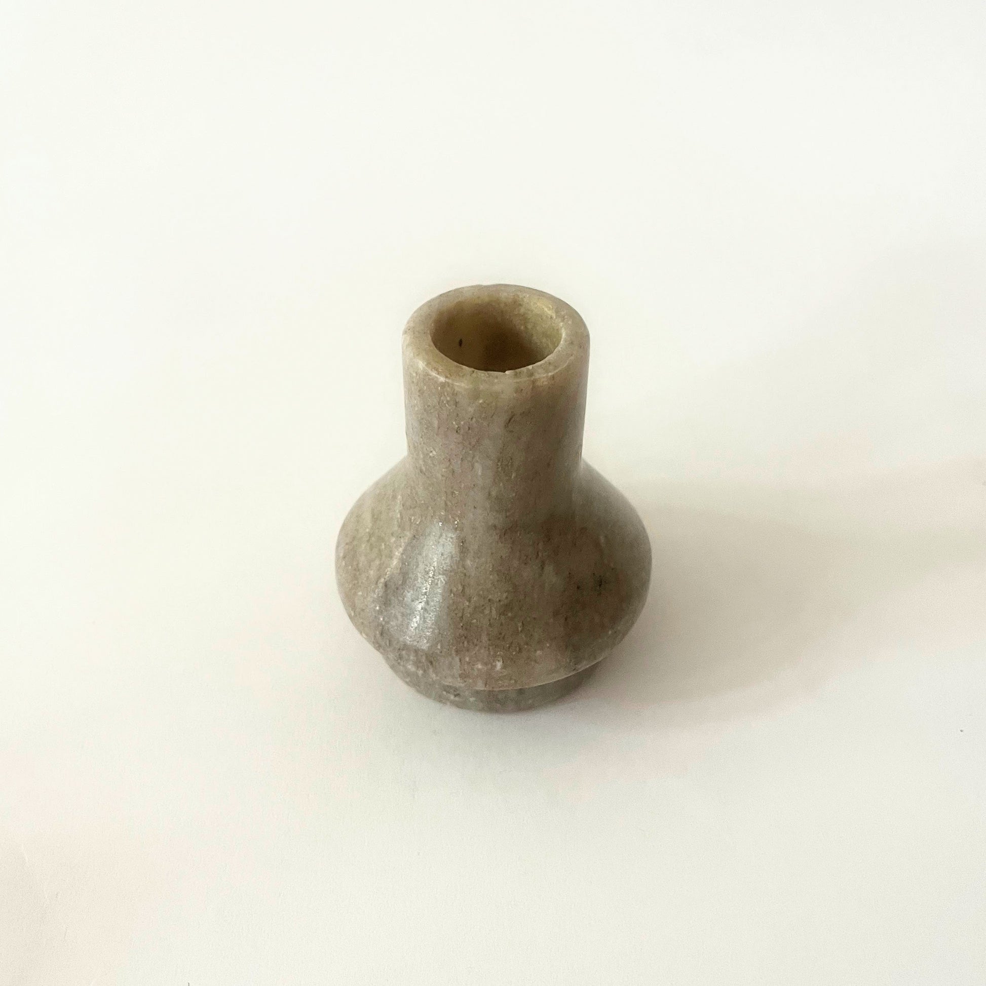 This marble candle holder has a refined, sculptural silhouette that blends timeless materials with a modern aesthetic. Crafted from solid marble, it features a cylindrical base that tapers slightly toward the top, creating a minimalist yet grounded profile. The natural veining of the marble adds organic character and subtle texture, making each piece unique. Its clean lines and substantial weight make it both a functional object and a decorative accent—perfect for adding understated elegance to a dining table, mantel, or shelf.