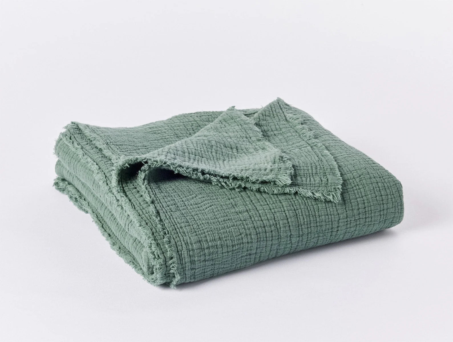 Each Topanga throw is unique, woven from the purest organic cotton. The soft, rippled weave creates an airy, pliable shape that will expand and contract over time—much like the waves and breaks along the California coastline that inspired it. This featherweight layer flows into waved edges, secured with a tiny zigzag stitch to hold the fringe in place.