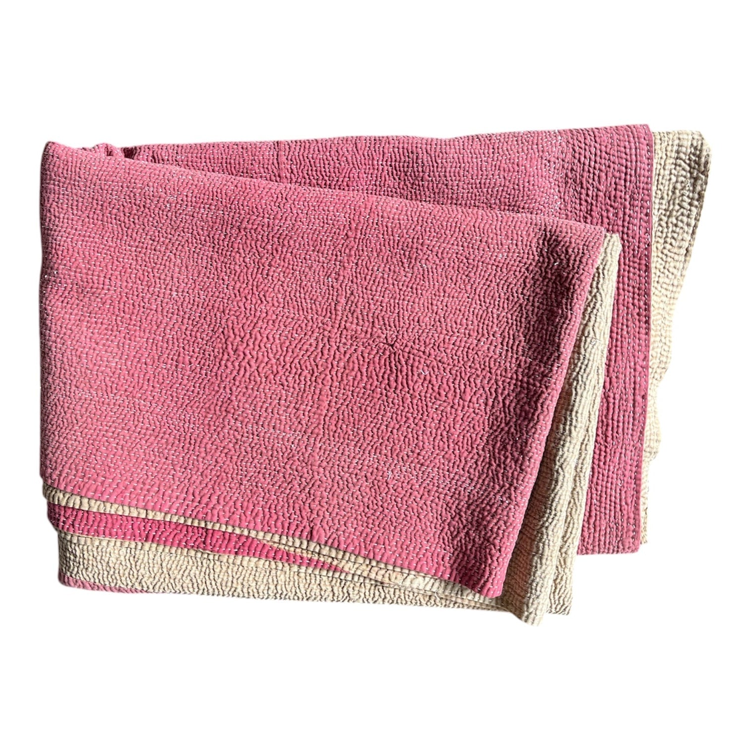 A genuine vintage Kantha, hand-stitched and stonewashed for a velvety, softened feel that only comes with age and craftsmanship.