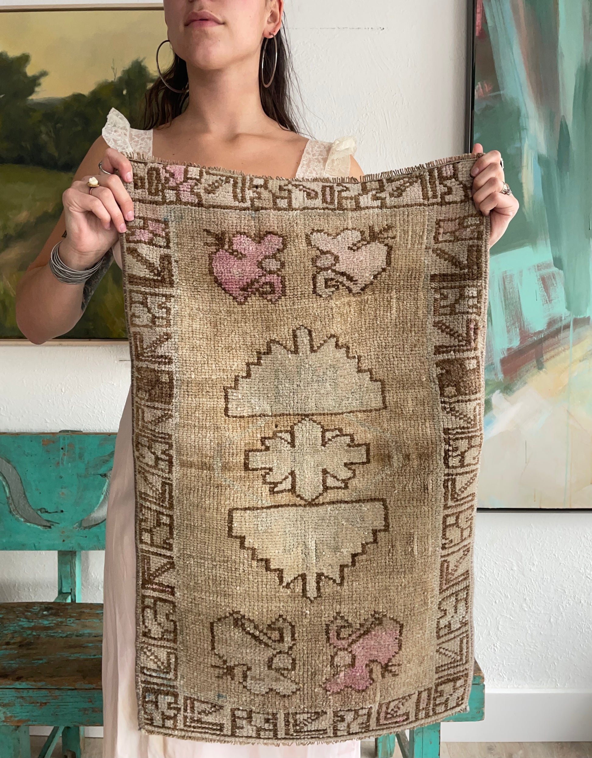 These antique vintage rugs have areas of wear and repairs and I love the stories behind every imperfection. Many rugs do not have straight lines because they are all handmade and one of a kind.