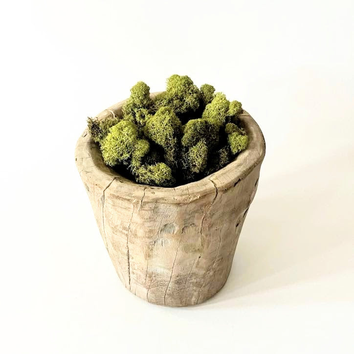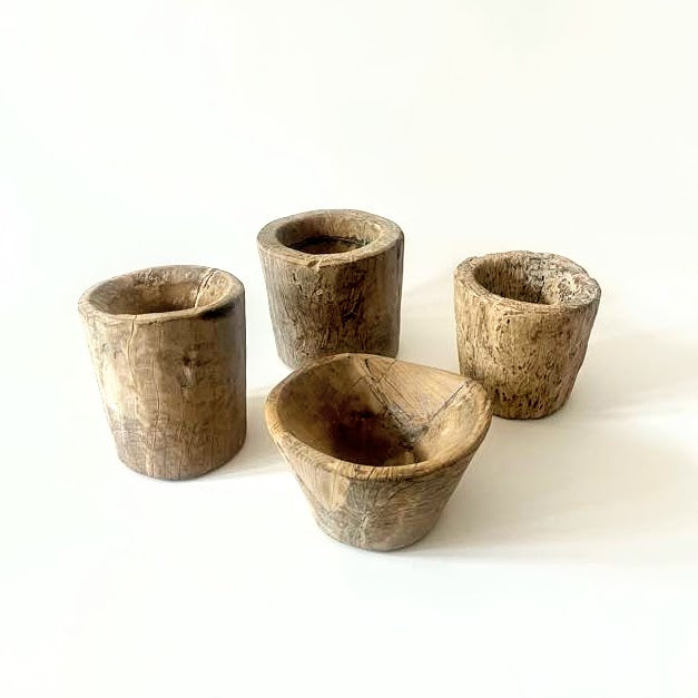 A well-worn wooden mortar with a rich surface and simple, utilitarian form. Once used for grinding, now perfect as a sculptural accent or catchall. Marks, cracks, and variations add to its character and charm. Choose your favorite in-person or our team will hand select one for you.